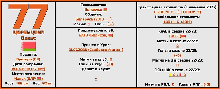 Однако сейчас у него появились весьма достойные конкуренты - воспитанник клуба Алексей Мамин провел отличный сезон за «Камаз» в Первой Лиге (32 матча, 34 пропущенных и 12 сухарей), плюс был подписан белорусский вратарь Денис Щербицкий, некогда основной страж ворот борисовского «БАТЭ», на счету которого есть и опыт выступлений в Лиге Европы и квалификации Лиги Чемпионов.