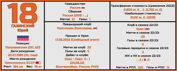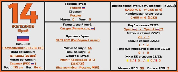 Несмотря на то, что Юрию Железнову только 20 лет, он уже является неотъемлемой частью основного состава уральского клуба, причем с каждым сезоном он получает все больше игрового времени на поле, и очень многие ждут, что именно текущий розыгрыш РПЛ станет прорывным для талантливого полузащитника.