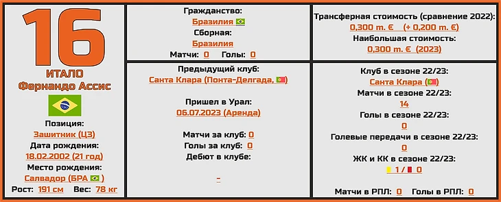 Уральская команда достаточно неплохо прошлась по португальскому региону, откуда забрала сразу 3-х игроков (центральный защитник Итало был арендован у «Санты-Клары», а его коллега по амплуа Кристиан «Кики» Нейва и нападающий Гильерме Шеттине перешли на уже полный контракт, из «Визелы» и «Браги», соответственно).