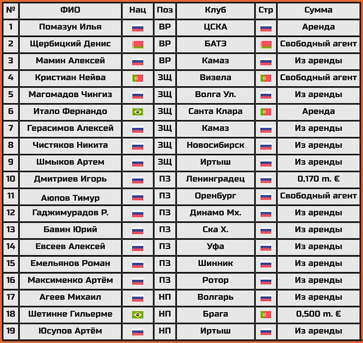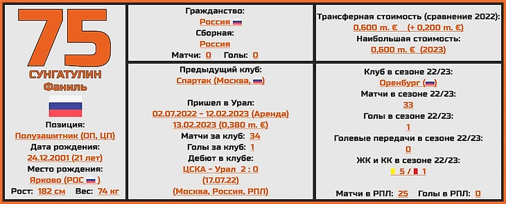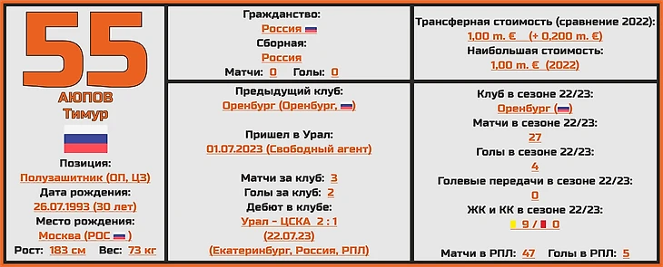 Помимо этого стоит так же отметить и переезд из «Оренбурга» полузащитника Тимура Аюпова, который на старте сезона забил за свой новый клуб уже 2 мяча.