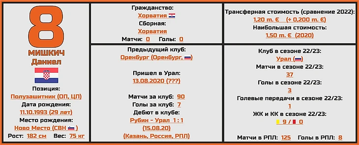 Возможно, имя этого 29-летнего хорватского полузащитника и не на слуху для большинства любителей российского футбола, однако ту пользу, которую Мишкич приносит уральскому клубу вот уже несколько лет кряду просто трудно переоценить.