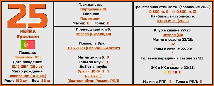 Среди иных опций на эти позиции в распоряжении у Гончаренко теперь есть и португалец Кристиан Нейву, или просто «Кики», который хоть номинально и левый защитник, без потери качества может сыграть и справа.