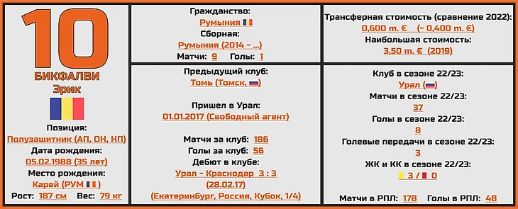 Эрик Бикфалви безоговорочно является главной звездой «Урала» вот уже на протяжении 6 лет, и именно через него, по-сути, строиться вся игра уральского клуба в атаке.
