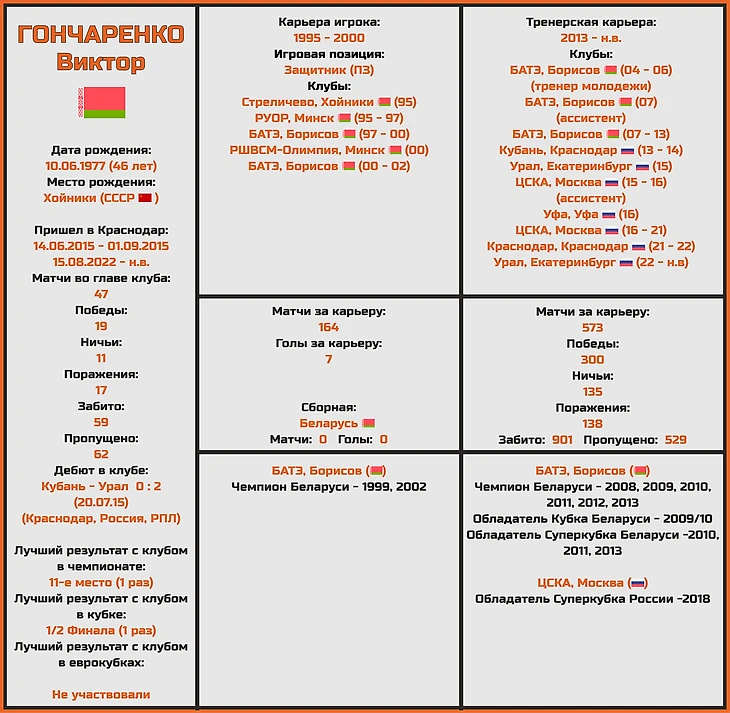Виктор Гончаренко возглавляет «Урал» уже не первый раз в своей карьере, и если в 2015-м все закончилось достаточно неудачно (долгого сотрудничества с клубом тогда не получилось, и буквально через 6 проведенных матчей (1 победа, 2 ничьи и 3 поражения) стороны расторгли контракт по обоюдному согласию), то вот вторая попытка с екатеринбургским клубом смотрится куда лучше.