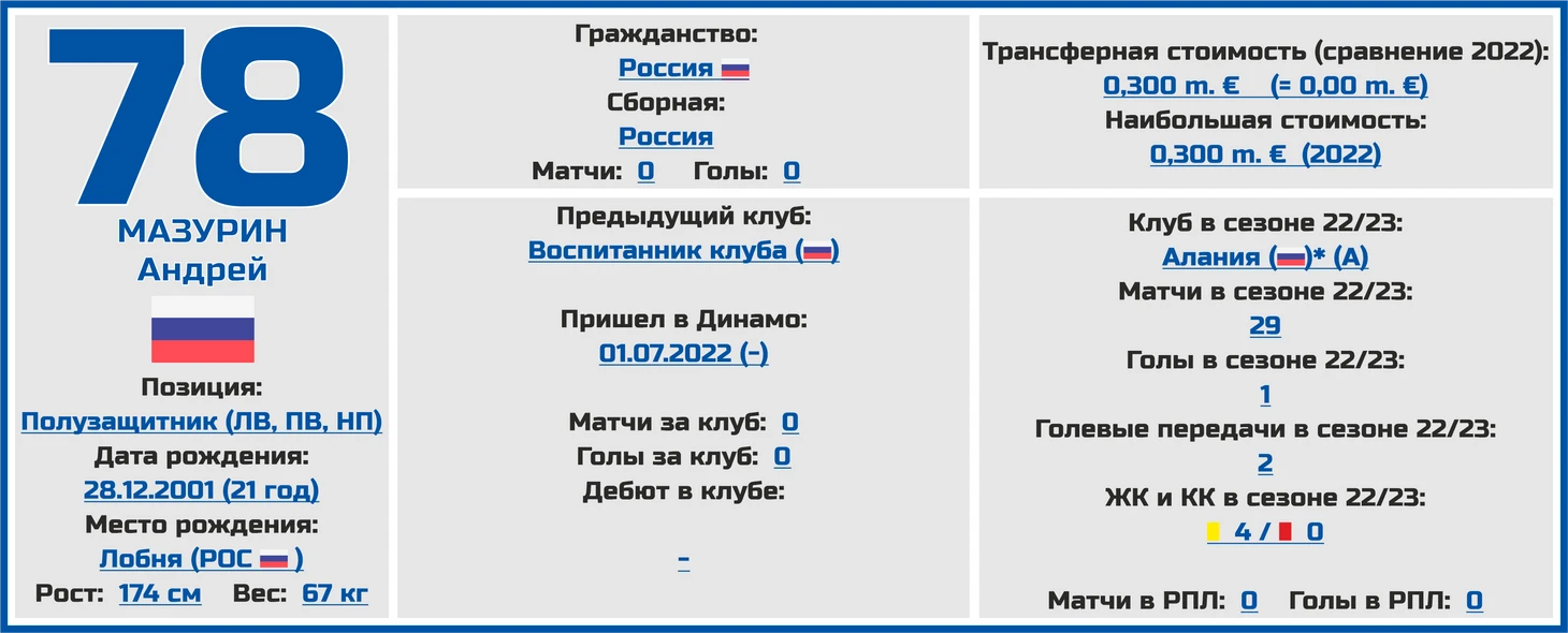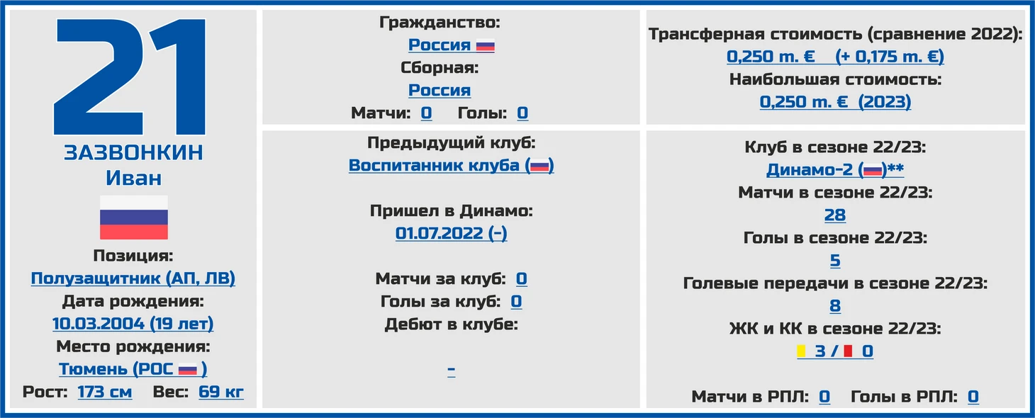 Заматерев и показа себя с лучшей стороны в играх за эти клубы был в итоге возвращен в «Динамо», и прошлый сезон он провел уже в бело-голубой майке (27 игр во всех турнирах и 3 голевые передачи).