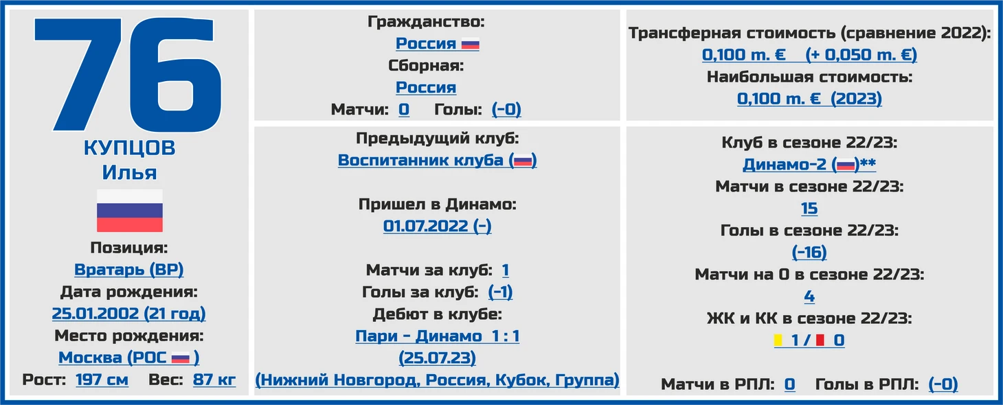 Чемпионат России. РПЛ. Сезон 2023/2024. ФК «Динамо»: состав, статистика, исторические факты и многое другое