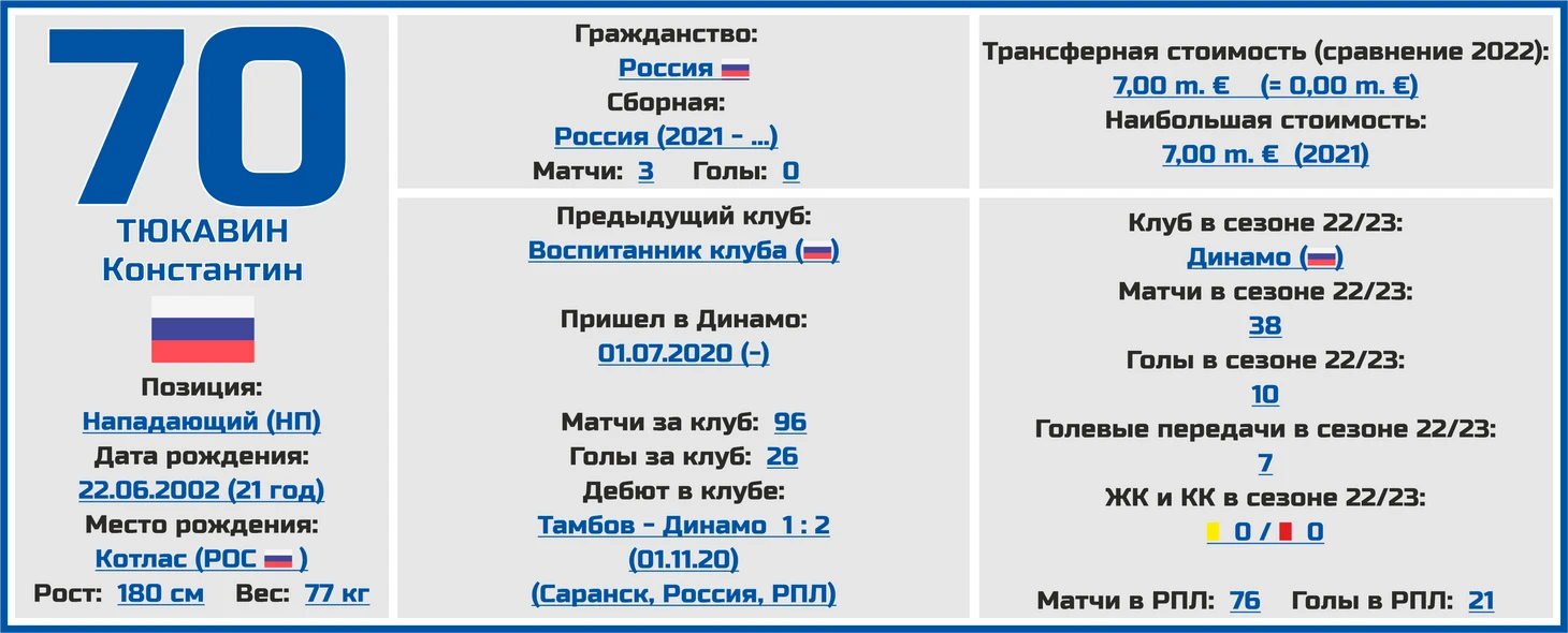 Что интересно, до 12 лет Константин Тюкавин совмещал занятия футболом и хоккеем с мячом, однако в итоге все же выбрал первый вид спорта.