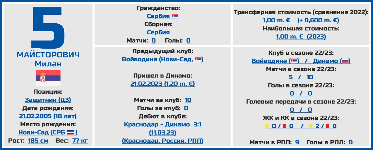 Милан Майсторович был куплен московским «Динамо» еще в преддверии прошлого сезона (у сербского клуба «Войводина»), однако окончательно переехал в Москву только этой зимой.