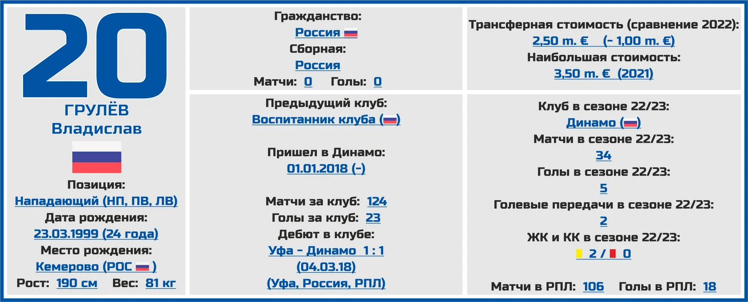 Константин Тюкавин наконец-то будет в этом сезоне главной ударной силой динамовской атаки, а на подмену ему есть и еще один игрок, прекрасно проявляющий себя сейчас в нападении, речь о Вячеславе Грулёве (которого Личка, видимо, тоже будет использовать именно как центрального форварда, а не игрока выходящего на бровке).