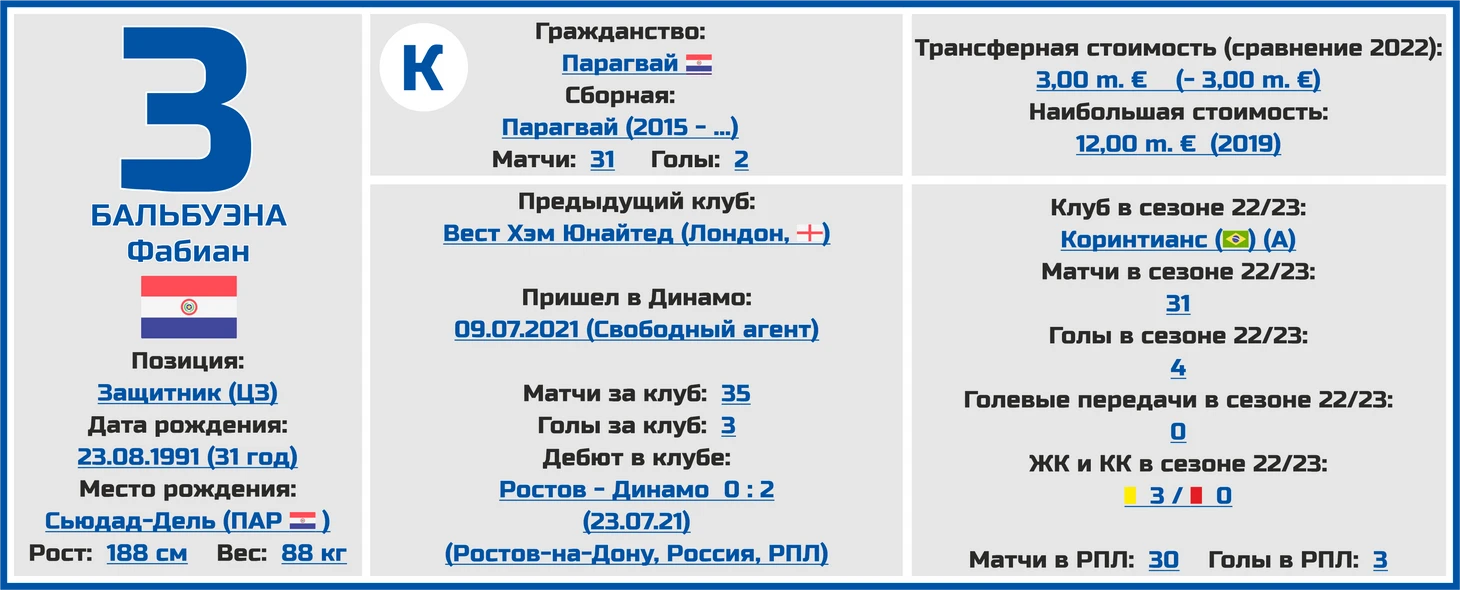 Главной новостью (пока что) для динамовцев в это трансферное межсезонье стало возвращение в стан «бело-голубых» некогда одного из лучших центральных защитников чемпионата России, парагвайца Фабиана Бальбуэны.