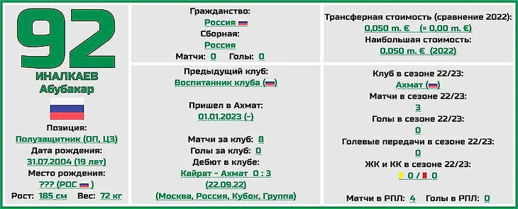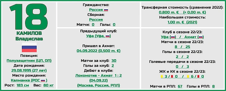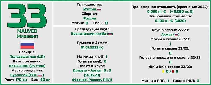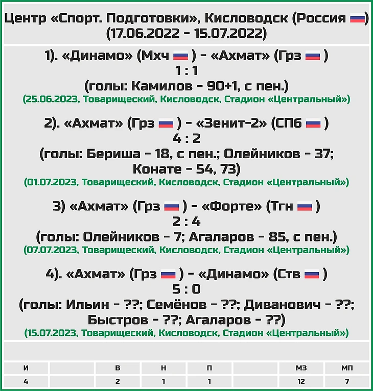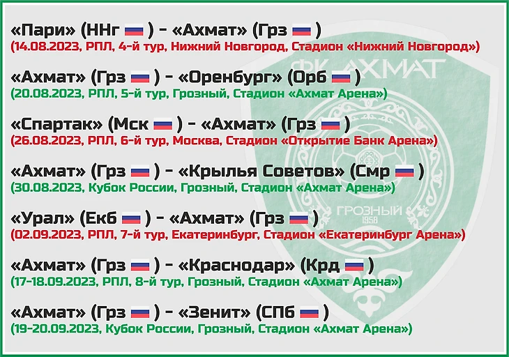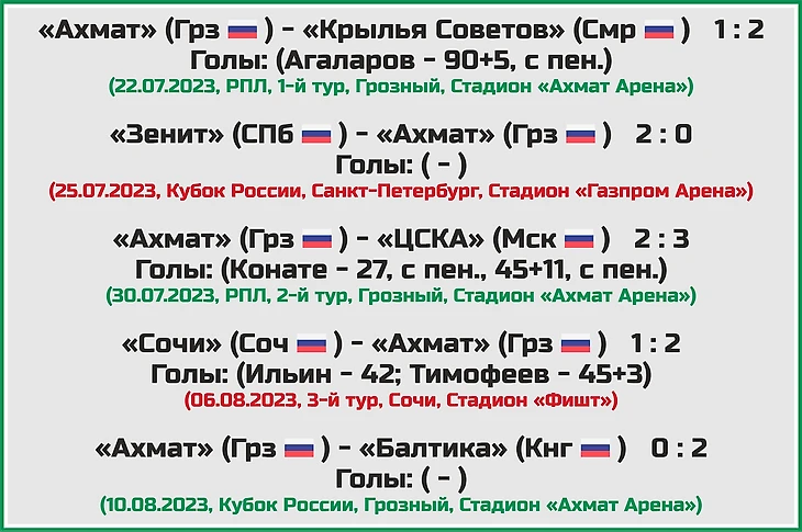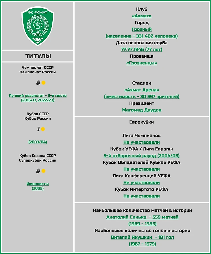Статистическое превью ФК «Ахмат» от блога «Топ-7 Матчей Недели»