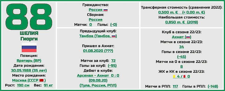 Гиорги Шелия провел прекрасный прошлый сезон, и во многом именно его уверенная игра позволила грозненцам забраться так высоко в турнирной таблице чемпионата России (всего 36 пропущенных мячей в 29 встречах).