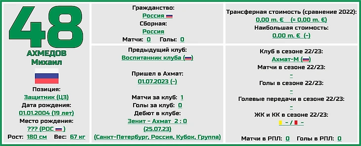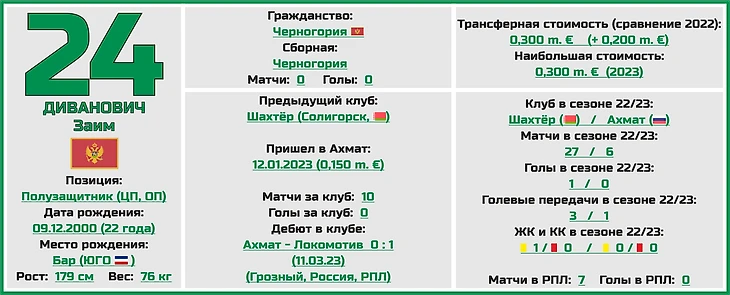 Чемпионат России. РПЛ. Сезон 2023/2024. ФК «Ахмат»: состав, статистика, исторические факты и многое другое