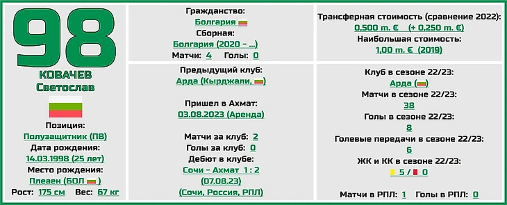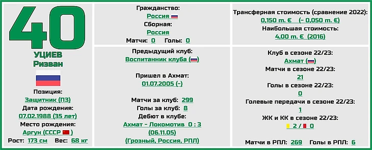 Помимо этого по-прежнему в команде универсальный игрок сборной Казахстана Марат Быстров, который может сыграть как на обеих бровках, так и в центре, ну и не забываем про настоящую легенду клуба, левого защитника Ризвана Уциева, который буквально в ближайших матчах должен будет преодолеть гроссмейстерский рубеж в 300 игр за клуб.