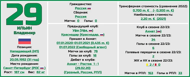 Ну и конечно же еще раз вспомним об опытном Владимире Ильине, на счету которого, кстати, больше всего забитых мячей за карьеру в РПЛ, среди всех 3-х форвардов команды (33 гола).