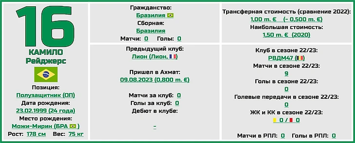 Буквально на днях в команду перешел бразилец Камило Рейджерс де Оливейра (более известный, просто как Камило), некогда находившийся в структуре французского «Лиона» (за сам клуб игрок так и не сыграл, мотаясь большую часть времени по арендам).