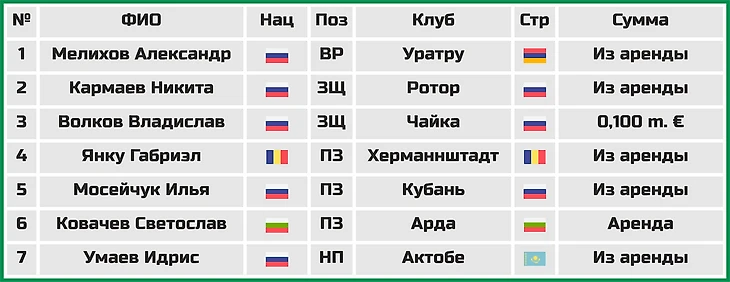 Также завершилась аренда еще одного игрока атаки Владислава Карапузова.