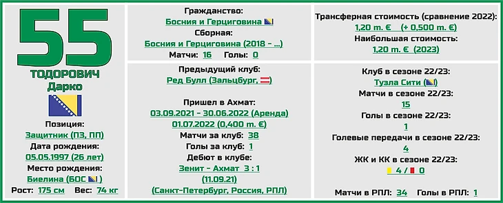 Если посмотреть на фланги обороны, то можно заметить, что и тут, в целом, все весьма неплохо - слева есть один из лучших легионеров нашего чемпионата, серб Мирослав Богосовац, а справа еще один игрок из Боснии и Герцеговины, причем единственный, кто играет за сборную своей страны, Дарко Тодорович.