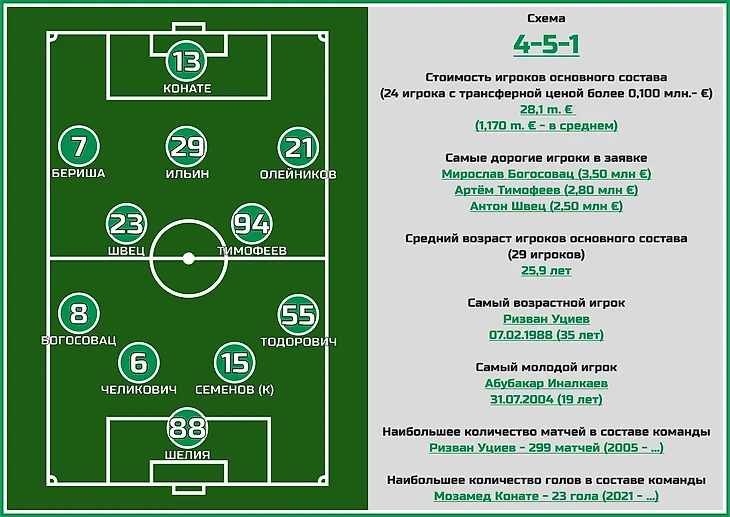 Атакующие вингеры известны давно - слева свой очередной сезон за клуб будет проводить один из самых звездных игроков клуба, 31-летний Бернард Бериша, ну а справа обязанности возложены на одно из главных открытий прошлого сезона, 24-летнего Ивана Олейникова.