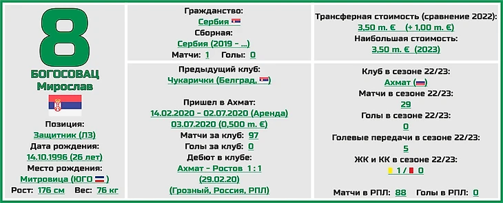 Мирослав Богосовац за три с половиной сезона в составе «Ахмата» превратился из подающего надежды молодого игрока в одного из лучших защитников чемпионата России, который уже прочно застолбил за собой звание одного из лидеров грозненского клуба.