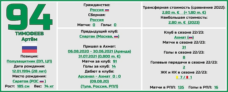 Это игрок середины поля, который должен добавить конкуренции Шведу и Тимофееву.