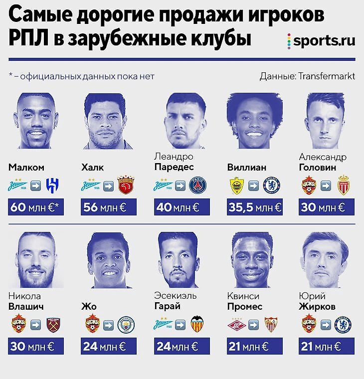 Это топ-10 трансферов по цене на выход из России.