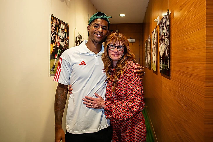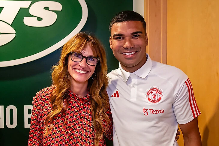 «МЮ» готовится к сезону в США – например, на прошлой неделе в Нью-Йорке обыграли «Арсенал». После того матча игроки и главный тренер Эрик тен Хаг встретились с Джулией Робертс – актрисе подарили именную футболку клуба с 1-м номером.