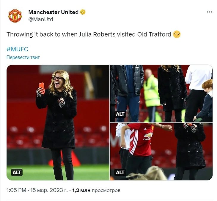 «Очень приятно снова увидеть Джулию Робертс после субботнего матча!» – написал твиттер «МЮ».