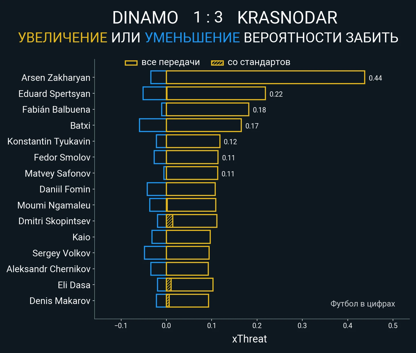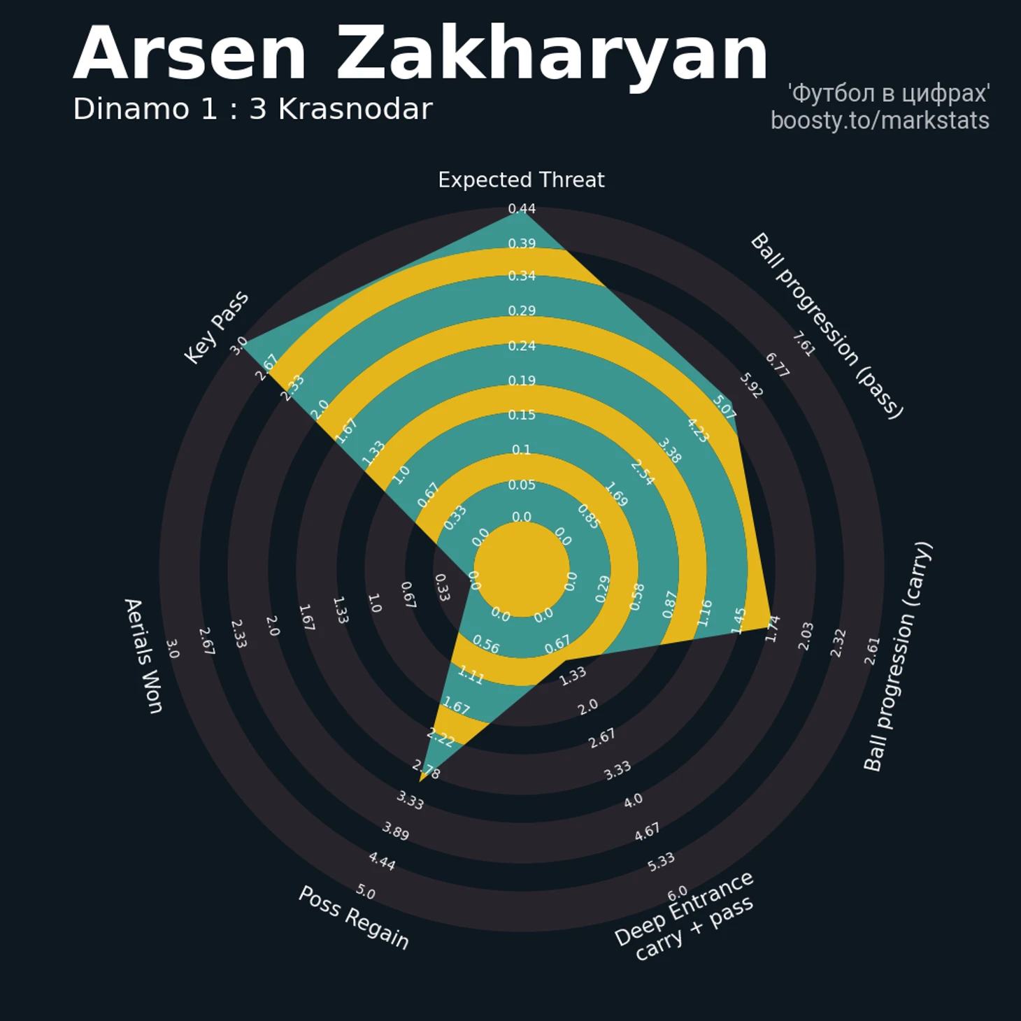 В перерыве Личка заменил Макарова, который совсем не вошёл в игру на Норманна и отправил Захаряна на правый фланг. Даже в таком неудачном матче Арсен был хорош и стал лучшим по ключевым передачам.