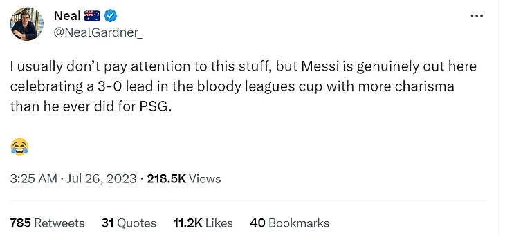 «Обычно я не обращаю внимания на такие вещи, но Месси действительно празднует победу со счетом 3:0 в бессмысленном Кубке лиг с большей радостью, чем когда-либо за «ПСЖ».