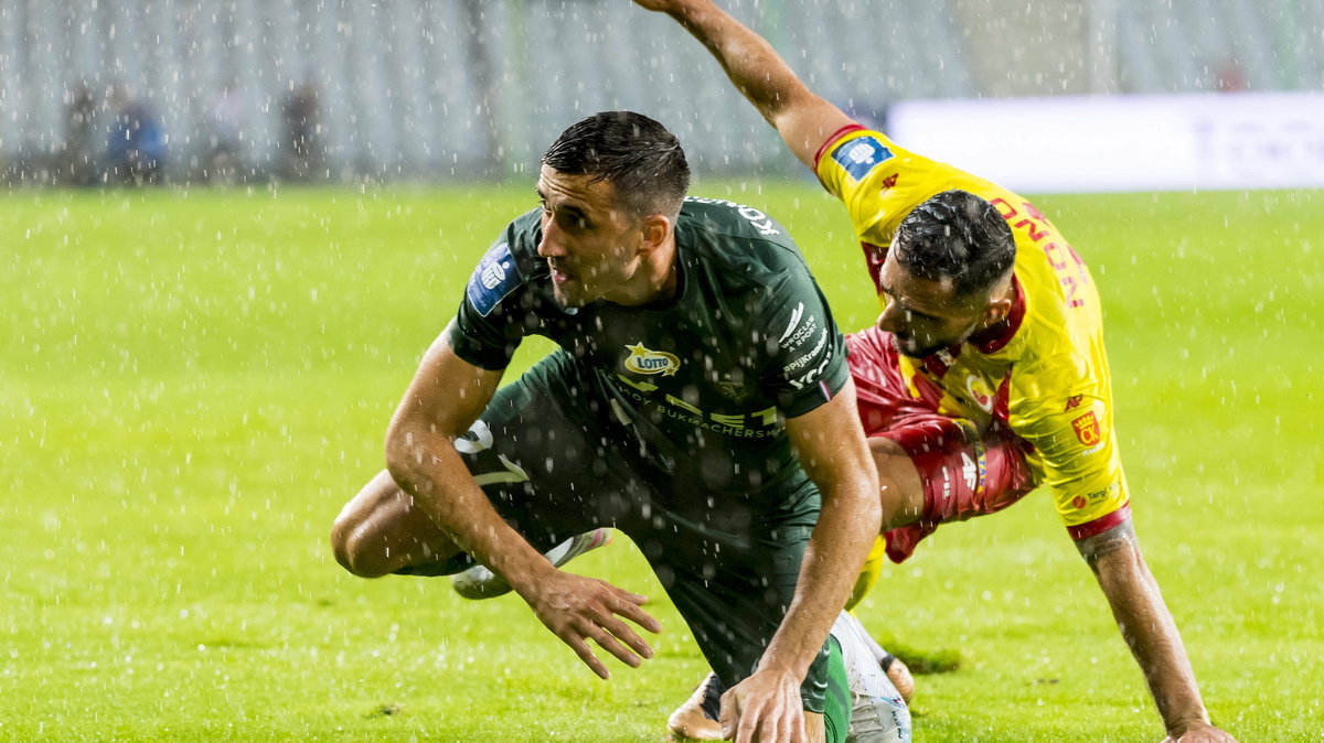 «Заглембе» на правах фаворита начал матч первым номером. На 8-ой минуте на стадионе в Любине зазвенела штанга. Мруз вывел на ударную позицию Бохара, который пробил в стойку ворот Белецкого. «Оранжевые» не сумели дожать соперника на старте поединка, а к середине тайма хожовяне начали думать о контратаках. Одна из них закончилась ударом Шчепана в штангу, мяч неудачно отскочил к Лавничаку, от которого отправился в ворота хозяев. «Рух» забил первый гол после возвращения, пусть и с большой помощью соперника. Дальше больше. Спустя несколько минут Михальски пробил рядом со штангой. После пропущенного мяча «оранжевые» снова придавили «Рух» к воротам. На 34-ой минуте Лавничак исправился за автогол, поразив уже противоположные ворота. Но на VAR рассмотрели игру рукой со стороны партнёра Лавничака, из-за чего взятие ворот было отменено.