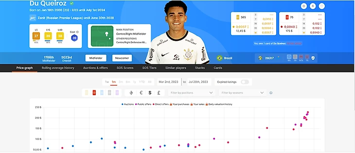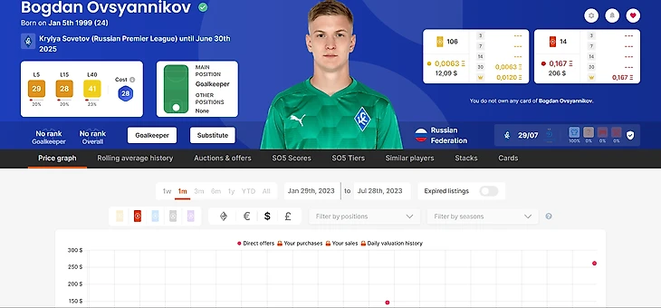 А что случилось с картами РПЛ? Начиная с весны 2022 года новые карточки игроков РПЛ не продаются на аукционах и не разыгрываются в качестве призов, но с помощью тех карт, которые были выпущены до начала всех геополитических штормов, вы все еще можете выигрывать призы. Новые игроки с картами других клубов, которые перешли в российские команды также имеют ценность. Например, редкие карточки Ду Кейроса выросли в цене почти в 4 раза (с 50 до 220-230) долларов после его перехода в «Зенит».
