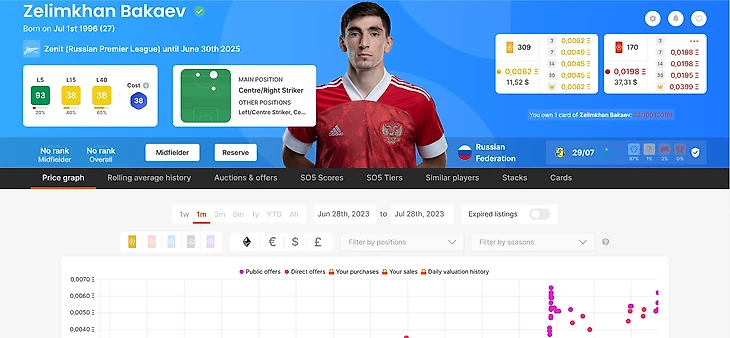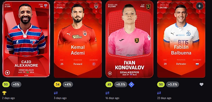 В двух словах напомню о сути гемплея Сораре. Каждый игрок покупает за криптовалюту или «обычные» fiatные деньги NFT-карточки игроков из разных лиг и клубов.