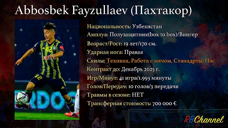 С большой долей вероятности, вторым новичком ЦСКА в летнее трансферное окно станет девятнадцатилетний игрок сборной Узбекистана Аббосбек Файзулаев. Давайте поближе познакомимся с этим парнем и порассуждаем на тему, чем он сможет помочь нынешнему ЦСКА.