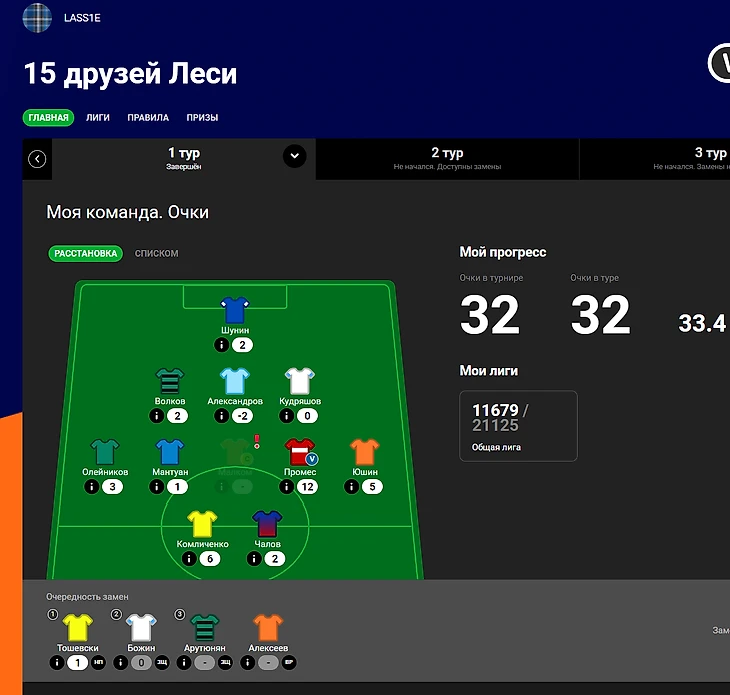 Привет! Вы в блоге Лэсси и я подвожу свои итоги первого тура фэнтези РПЛ. Вот, посмотрите, кого я набрала на первый тур.