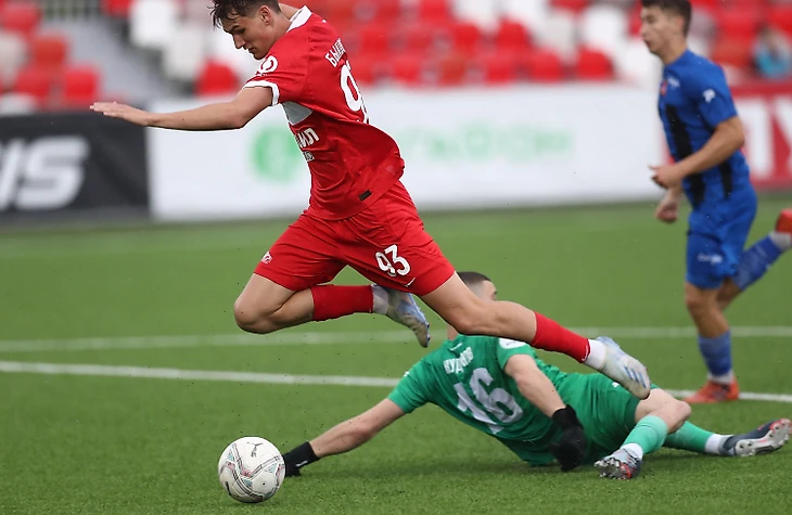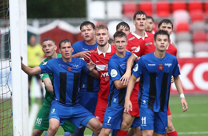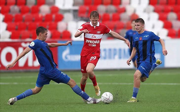 Ключевой момент. «Спартак» быстро открыл счет: Дмитрий Иванников бросил в прорыв Артёма Быковского, форвард обыграл вратаря и закатил мяч в пустые ворота. Красно-белые «душили» соперника прессингом и не давали ему перейти центр поля, создавая момент за моментом. Но в середине тайма, когда счет уже должен был быть разгромным, гости отыгрались. Тем не менее на перерыв спартаковцы ушли с преимуществом: Дмитрий Павлов заработал пенальти, а капитан команды Никита Бозов взял инициативу на себя и уверенно реализовал 11-метровый.