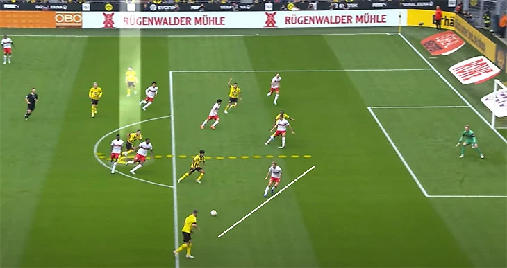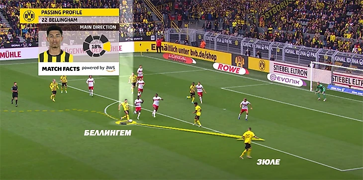 Матч с «Лейпцигом»: против Беллингема играют два соперника, он отдает пас на Зюле.