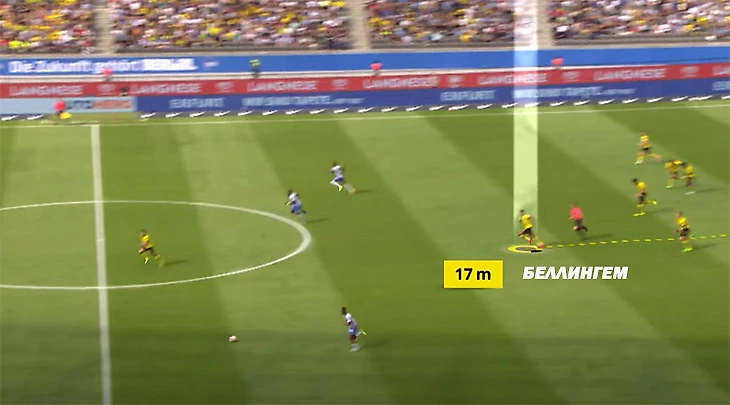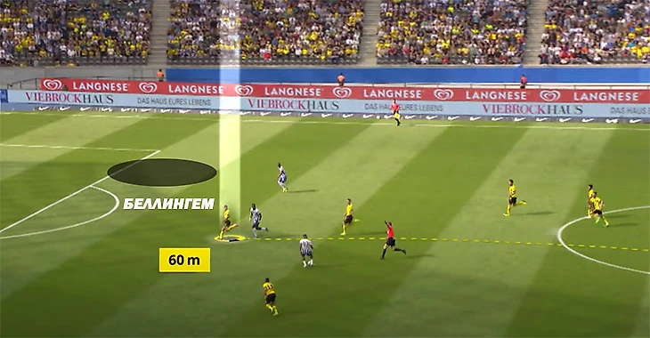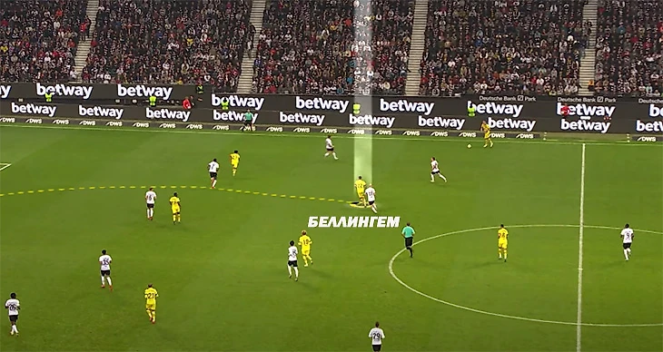 Это возможно благодаря тому, как англичанин интерпретирует свободное пространство. Он уже один из лучших в мире по полезным движениям без мяча. Пример из игры против «Айнтрахта»: Джуд видит, что если он сделает рывок, то на него будет сложнее среагировать.