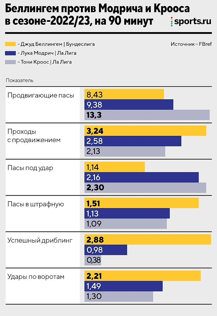 Несмотря на это, англичанина воспринимают как прямую замену кому-то из этой пары. Это лишь отчасти правда: да, Джуд должен стать таким же незаменимым, но это часть нового, а не замена старого. Стилистически он не похож ни на Модрича, ни на Крооса.