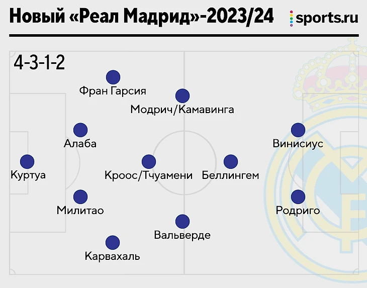 Подобные эксперименты «Мадриду» несвойственны. В последние годы клуб всегда использовал 4-3-3, когда ушел Иско, забыли и о десятке: ни потеря Каземиро, ни травмы Тчуамени не вынудили «Реал» перестроиться. К примеру, под прошлый сезон в опорную зону перевели Крооса.
