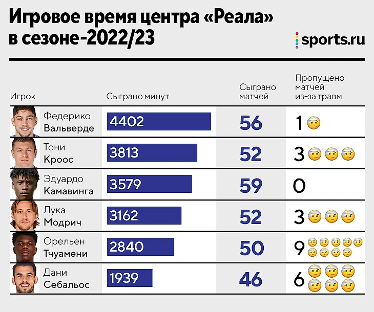 Феде провел часть минут на правом фланге, Камавинга – на левом, но даже Себальос, полгода просидевший в резерве, умудрился наиграть больше 40 матчей. Это минимум, который Беллингем гарантированно получит. Если учитывать, что Модричу уже скоро 38 лет, Джуд может рассчитывать на большее, даже если весь год потратит на адаптацию.