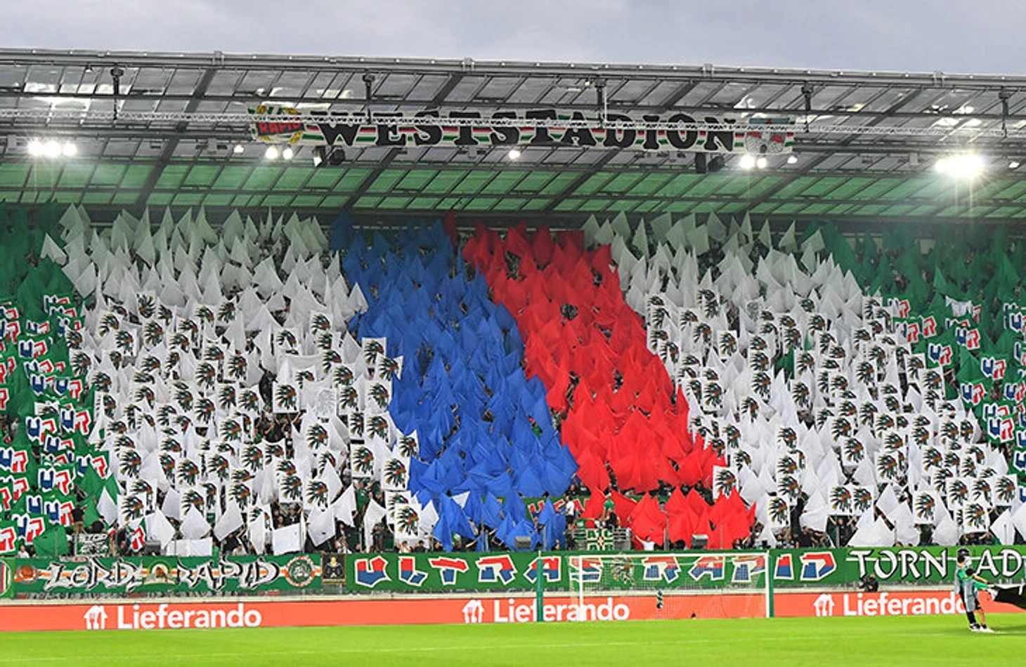 Трибуны «Рапида» регулярно окрашиваются так.