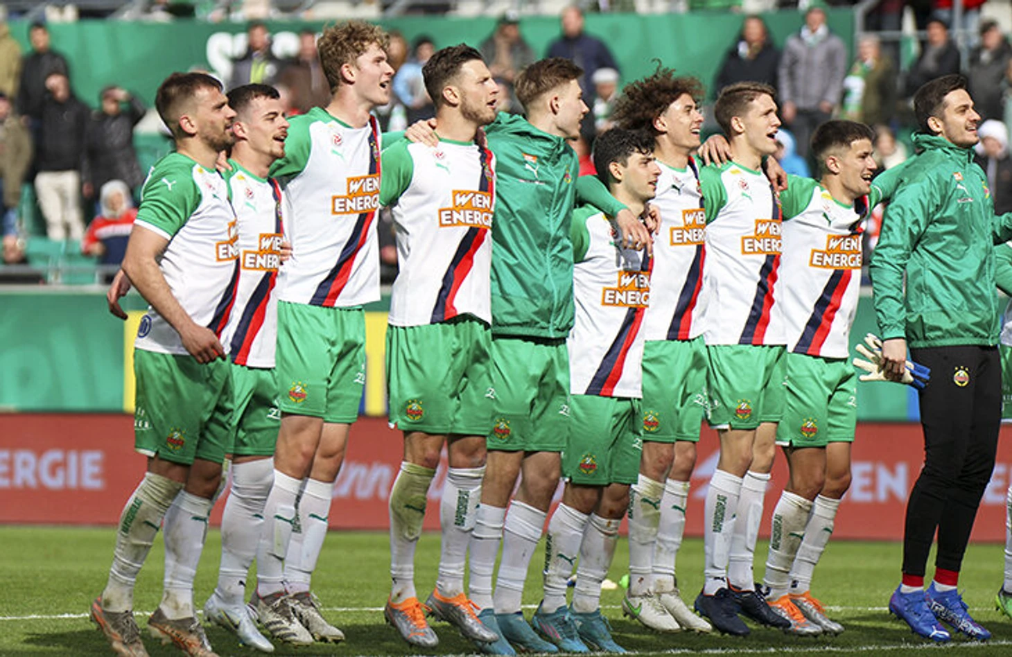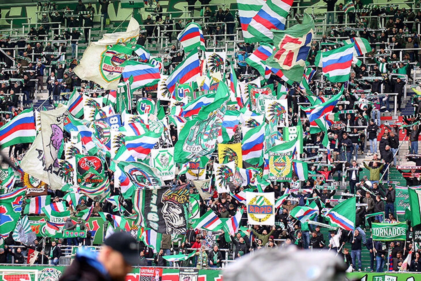 Пока голландскому «Херенвену» прилетает за рукава на форме в цветах России, фанаты «Рапида» без проблем красят трибуны в бело-сине-красный.