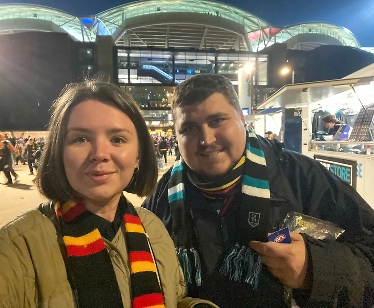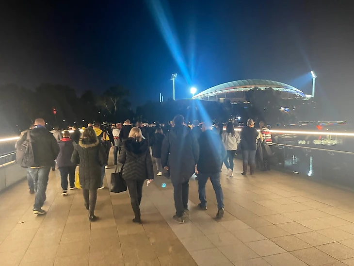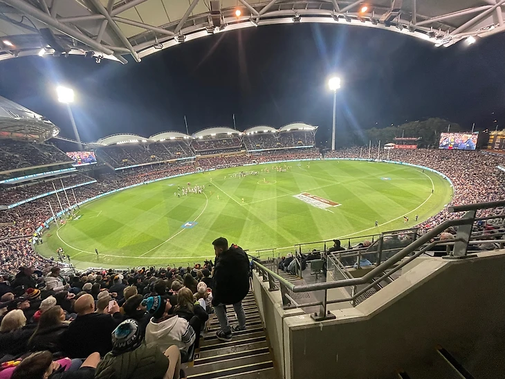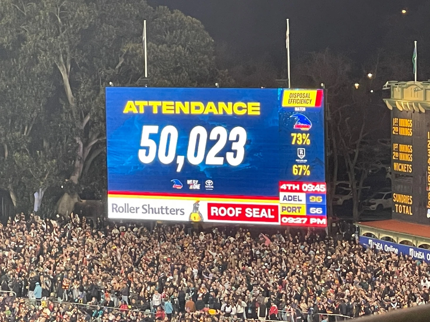 Сразу стало очевидно, что для Аделаиды этот матч – одно из важнейших событий в спортивном году. Невероятное количество людей в атрибутике «Аделаиды Краус» и «Порт Аделаиды Пауэр». Особенно бросалось в глаза количество семей, где разные члены болеют за разные команды.
