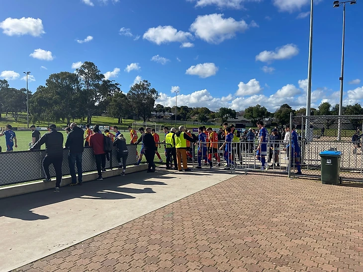 В общем, мы привыкли к тому, что на матчах в Австралии не всегда есть трибуны. Но здесь не существовало даже скамеек: все болельщики стояли по периметру поля.