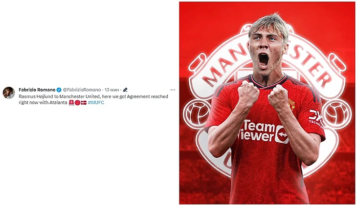 Болельщики «Манчестер Юнайтед» дождались фирменного Here we go от Фабрицио Романо по трансферу форварда «Аталанты» Расмуса Хейлунда.