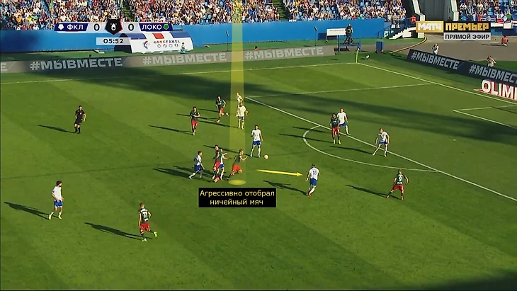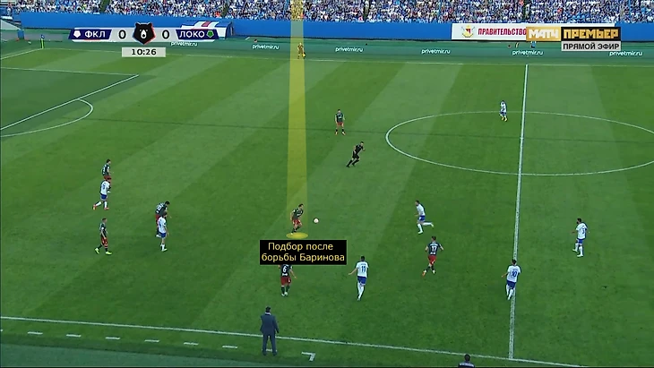 Зотов – один из самых заметных игроков «Рубина». Александр играет восьмерку в 5-3-2 и классно помогает в атаке. Зотов крутит головой, отдает диагонали, обостряет, ориентируется на мяче и пространстве. С «Локомотивом» полузащитник в касание оформил тончайший предассист, а против «Оренбурга сделал гол «Рубина». Во время аута на левом фланге Зотов находился под опекой, но затем обратил внимание на свободную зону перед защитниками, мгновенно ее занял (просил передачу еще во время рывка в нее), в касание подстроился под передачу Рахмоналиева и без лишней суеты пробил после отката Даку.