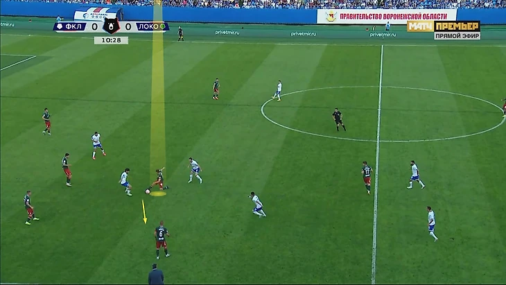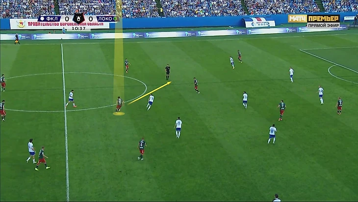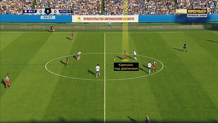В Воронеже вышли Погостнов (обычно играл правее, вчера – левее) и Кузьмичев. Пара оказалась проблемной: Карпукас предъявлял за вынос в ситуации, когда можно отдать коротко; Кузьмичев ужасно сыграл по Маркову и чуть не привез пенальти (снова проиграл нападающему); оба уступали в борьбе (или опаздывали на единоборства).