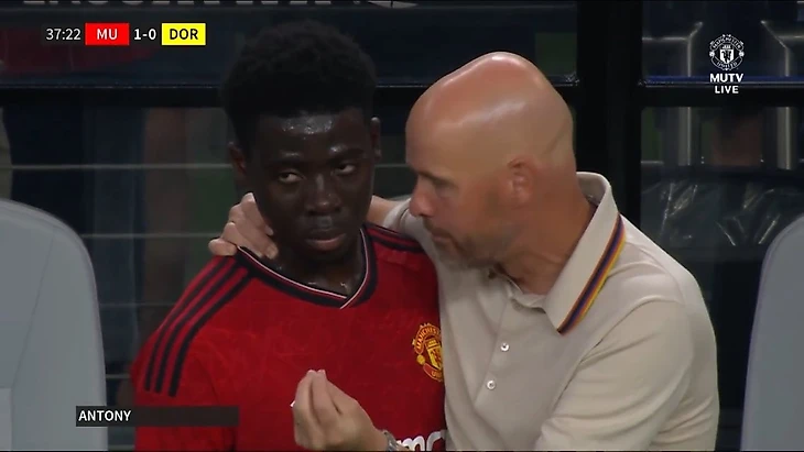 Тен Хаг убрал с поля 19-летнего игрока «МЮ» за стычку с соперником. Затем тренер долго беседовал с юношей на бровке