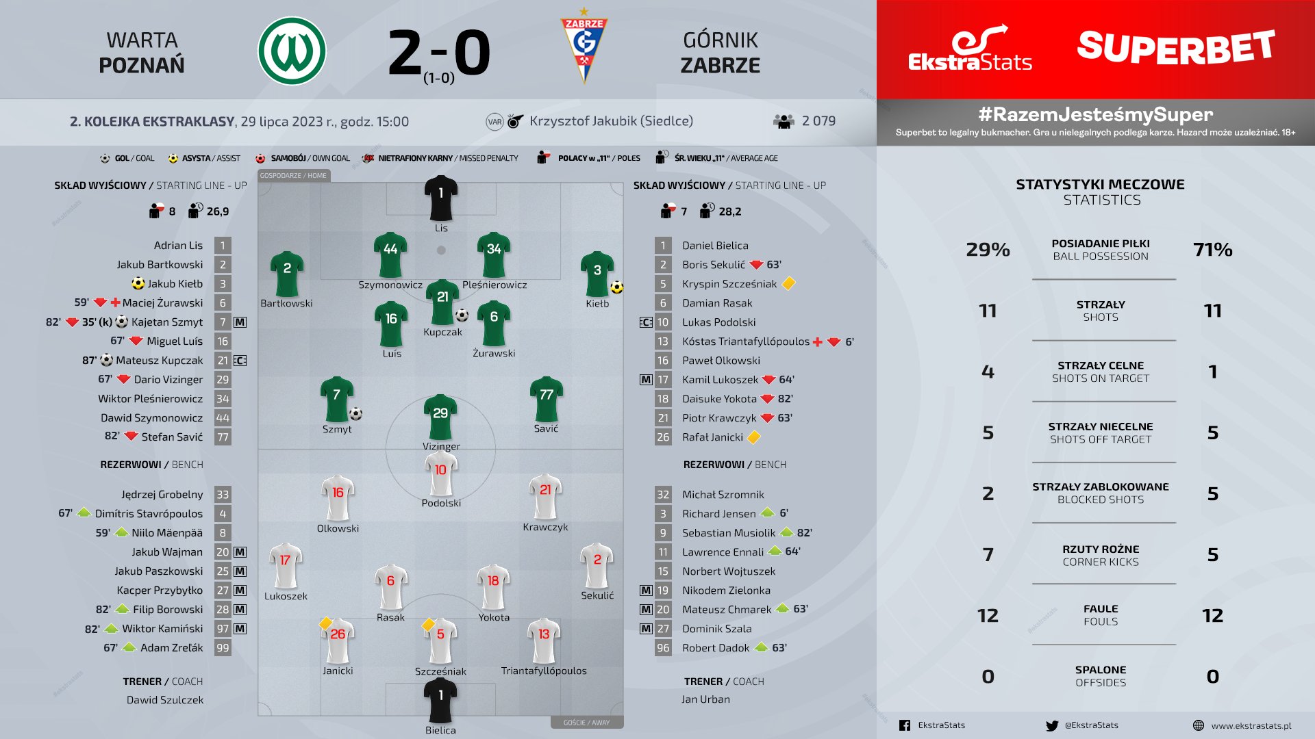 Субботнюю программу открывали два матча, в которых встречались команды, еще не набиравшие очков в новом сезоне. В первом из них «Варта» принимала «Гурник». Познаньцы в первом туре проиграли щецинской «Погони», а «Гурник» уступил на домашней арене «Радомяку».